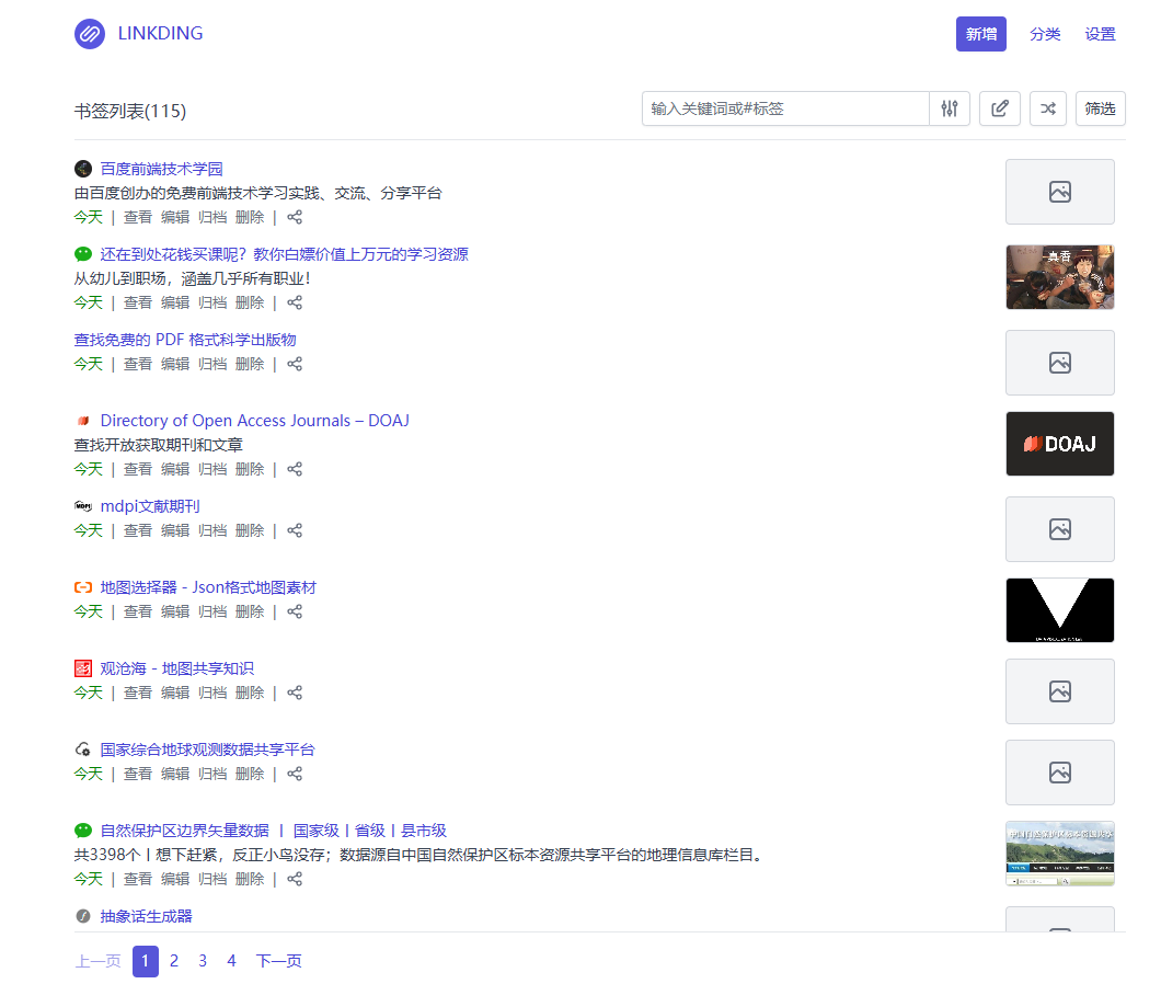 基于linkding修改的书签管理器,进行了中文本地化、功能增强、界面优化。支持🎲随机排序、📅日期筛选、🐞自定义快照脚本、♻️回收站等丰富功能,拥有搜索栏&侧边栏随屏滚动、侧边栏折叠、独立滚动条、位置&折叠状态记忆等界面优化。